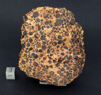Коллекция Месторождения, №31121. Гиббсит в боксите оолитовой текстуры. Оолиты лимонит-гетитовые (?) с редкими кристаллами пирита. 11х9х3.5 см.
