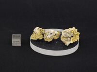 Коллекция Месторождения, №31144. Галотрихит с копиапитом по мелантериту. 3.4х2х2 см. 2.7х1.8х0.4 см. 2.5х1.7х1 см.