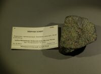 Коллекция Месторождения, №32506. Пироксенит гортонолитовый. Половинка ксенолита. Штуф 6,5х5,5х4 см. Длина экспоната 6.5 см.