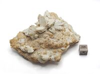 Коллекция Образования и превращения, №1512. Псевдоморфоза по расщепленным кристаллам гипса, изометричного облика, пинакоидального габитуса, на матриксе. Разм. 12х8х6 см. Длина экспоната 12 см.