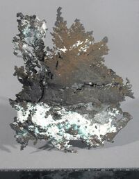 Коллекция Образования и превращения, №1583. Плоские дендриты до 6 см с тонкими пленками серебра на окончании дендритовых ветвей. Размер 14х13см Длина экспоната 14 см.