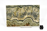 Коллекция Образования и превращения, №1613. В широкой геденбергит-волластонитовой зоне тонкие дендриты, восходящие от каймы м.з. геденбергита, нарастающего на датолитовую зону в конц.зональном скарне.