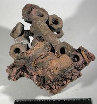 Коллекция Образования и превращения, №1655. Псевдоморфоза меди по "спекшимся" железным болтам и гайкам. Размер 23х22х16см. Длина экспоната 16 см.