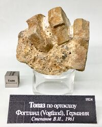 Коллекция Образования и превращения, №1824. Псевдоморфоза топаза по ортоклазу в кварцевом порфире. Длина экспоната 6 см.