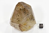 Коллекция Образования и превращения, №1870. Включения кристаллов {111} декорирующих фантомные грани {101} кварца. Включения октаэдрических кристаллов декорирующих фантомные грани ромбоэдрического кристалла кварца. Длина экспоната 8 см.