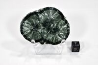 Коллекция Образования и превращения, №2346. Полированная пластина, демонстрирующая срез контакта нескольких сферолитов клинохлора. Длина экспоната 6 см.