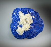 Коллекция Образования и превращения, №2577. Частичная псевдоморфоза по конкреции азурита Длина экспоната 8 см.