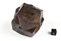 Коллекция Образования и превращения, №2978. Псевдоморфоза гетита по двойнику прорастания пентагондодекаэдрических кристаллов пирита по [110] (железный крест). Длина экспоната 6 см.
