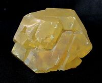 Коллекция Кристаллы, №2702. Фрагмент блочного кристалла серы размером 9х7х5см с огранкой гранями призмы и дипирамиды. Длина экспоната 9 см.Размер минерала 9 см.