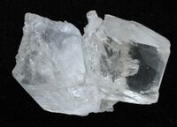 Коллекция Кристаллы, №4832. Сросток 2 прозрачных бесцветных кристаллов призматического габитуса, в одном из них включения серы. Размер образца 9х7х6 см. Длина экспоната 9 см.Размер минерала 9 см.