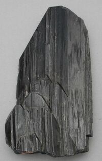 Коллекция Кристаллы, №4857. Фрагмент (сколот по спайности 010) хорошо образованного кристалла с габитусным пинакоидом 100 (с комбинационной штриховкой) . Длина экспоната 7.5 см.Размер минерала 7.5 см.