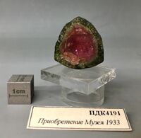 Коллекция Поделочные и драгоценные камни, №4191. Турмалины розовые и зеленые. Пластинки (2) полированные. 2.3х2.3 см
