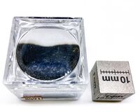 Коллекция Поделочные и драгоценные камни, №8091. Граненая вставка бесцветного пудретитта. SI1 GIA Type III; colorless; 3.20x2.60x1.65 mm Длина экспоната 0.3 см.