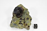 Коллекция Коллекция В.И.Степанова, №3843. Красно-бурый тетрагонтриоктаэдр на скарнированной породе, эпидот, хлорит.
