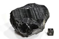 Коллекция Коллекция В.И.Степанова, №3856. Фрагмент монокристалла шорломита покрытого индукционными гранями. Длина экспоната 8 см.