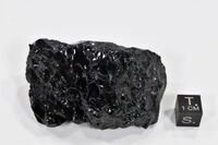 Коллекция Коллекция В.И.Степанова, №4669. Скол черного блестящего ксенокристалла Na-авгита из пузырчатых базальтовых лав (четвертичный возраст). Длина экспоната 5 см.