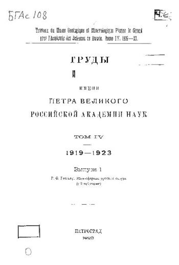 Труды Геологического и Минералогического Музея имени Петра Великого Российской Академии Hаук, Том IV, 1919-1923