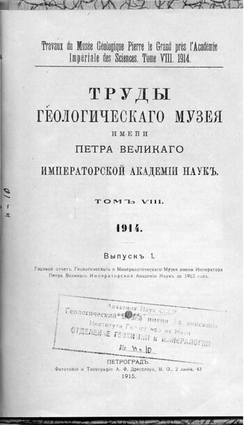 Pdf icon.png Годовой отчетъ Гeологическаго Музея имени Петра Великаго Императорской Академiи Наукъ за 1913 годъ