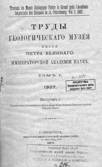 ТРУДЫ ГЕОЛОГИЧЕСКАГО МУ3ЕЯ ИМЕНИ ПЕТРА ВЕЛИКАГО ИМПЕРАТОРСКОЙ АКАДЕМIИ HAУКЪ, ТомI, Выпуск1