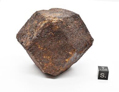 Пентагондодекаэдр пирита, остров Эльба (Италия). Покрыт коркой гидроокислов железа. Год записи в музей - 1920.