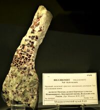 Коллекция Систематическая коллекция, №95458. Крупный скелетный кристалл виллиомита размером 7х4 см в полевом шпате. Длина экспоната 19.0 см.Размер минерала 1.00 см.