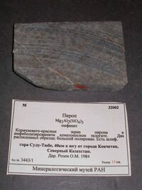 Найден: гора Сулу-Тюбе, 40км к югу от города Кокчетав, Северный Казахстан.Минералы-спутники: Омфацит.