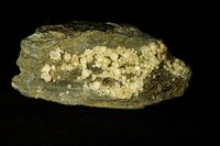 Коллекция Систематическая коллекция, №95318. Щетка бесцветных изометричных кристаллов царегородцевита размером до 0,7 см на поверхности трещины в кварц-альбит-мусковит-хлоритовом сланце Длина экспоната 10 см.Размер минерала 0.50 см.